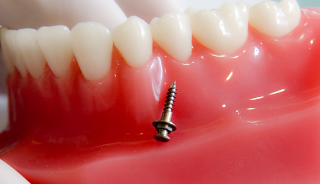 En muchos casos se puede acelerar la ortodoncia o conseguir mejores resultados si tenemos un excelente punto de apoyo para mover los dientes en cualquiera de las tres dimensiones del espacio, utilizando un dispositivo complementario que llamamos mini-implante, el cual es un tornillo miniatura de titanio con menos de 2mm de diámetro. Este es un complemento del tratamiento de ortodoncia que lo utilizamos temporalmente hasta cumplir los objetivos planteados, posteriormente es retirado sin dejar ninguna secuela.